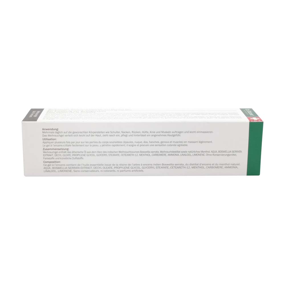 Weihrauchöl-Menthol Gel dient zur Erhaltung der Beweglichkeit. Das Harz des indischen Weihrauchs verfügt über natürliche Stoffe, die sich ideal für Massagen zur Erhaltung der Beweglichkeit eignen. Das enthaltene Weihrauchöl, wertvolles Weihrauchdestillat sowie natürliches Menthol ziehen dank der speziellen Gel-Grundlage rasch und rückstandslos ein, ohne die Haut auszutrocknen.