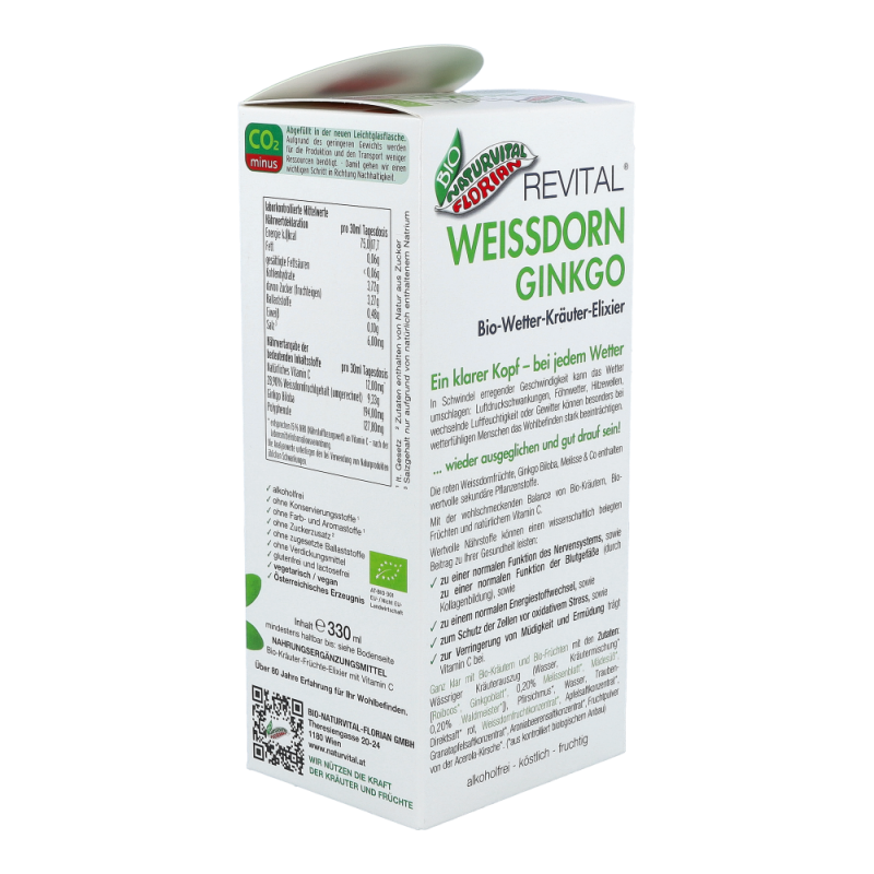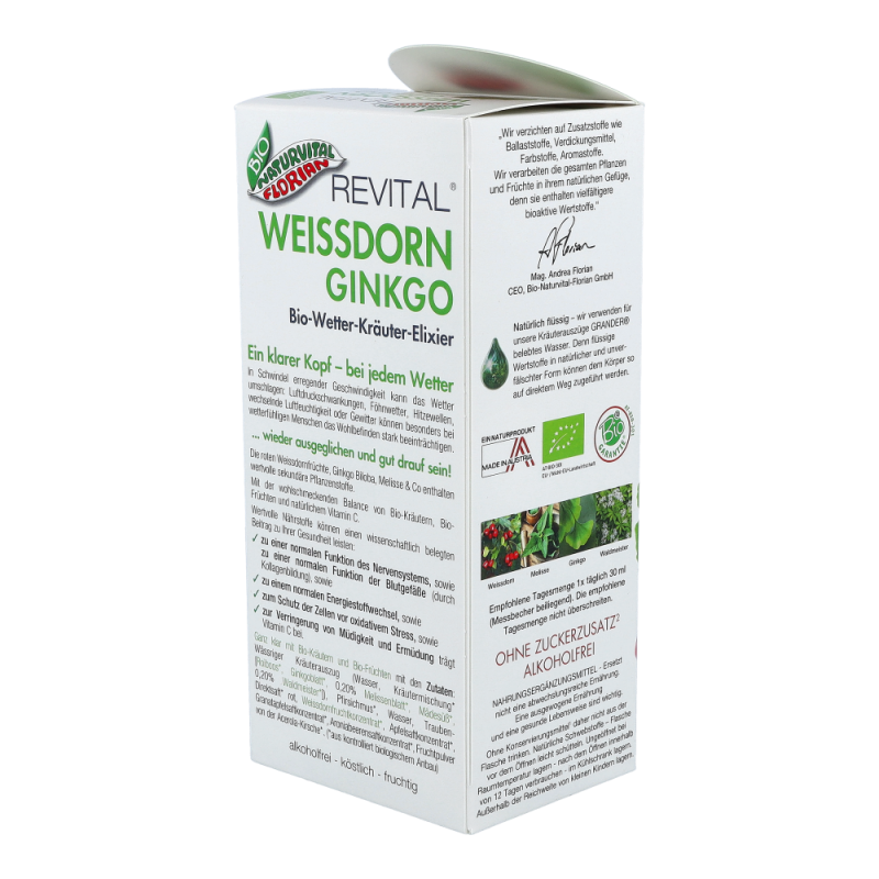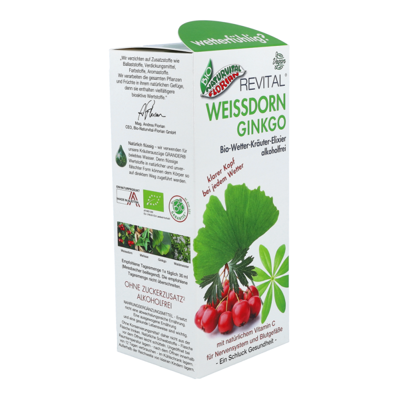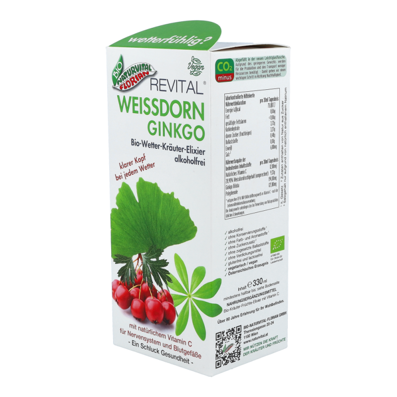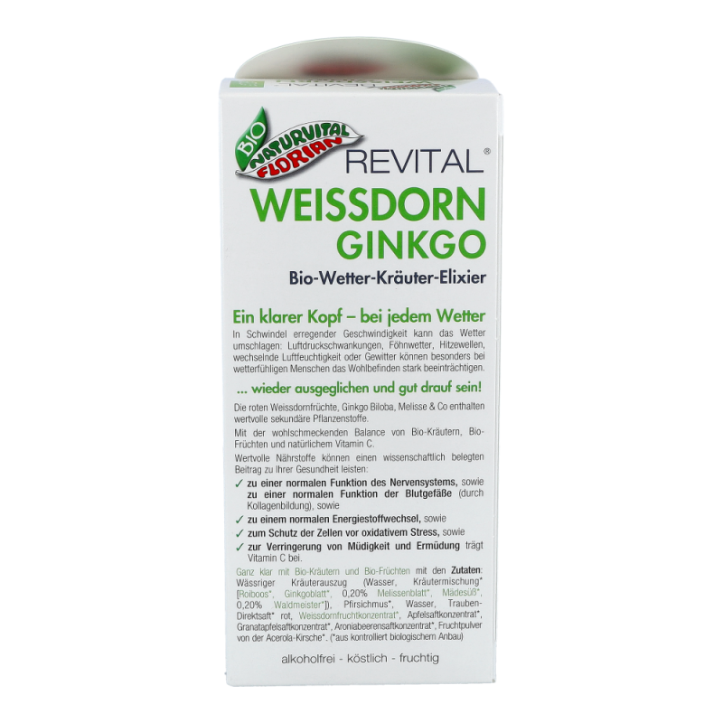 Weißdorn Ginkgo Elixier Bio wirkt stärkend und vitalisierend. Gingko wirkt belebend und unterstützend bei geistiger Beanspruchung.