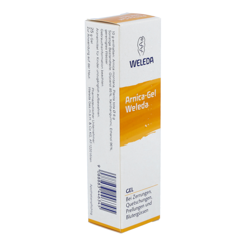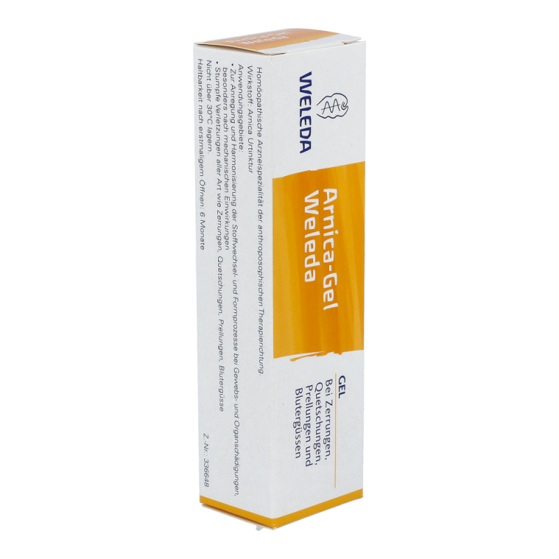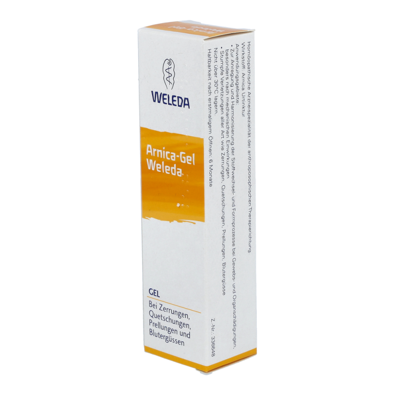 Weleda Arnica-Gel kühlt und lindert bei stumpfen Verletzungen. Zur Anregung und Harmonisierung der Stoffwechsel- und Formprozesse bei stumpfen Verletzungen wie Prellungen oder Blutergüssen. Als Alternative für unterwegs oder beim Sport, wenn die Anwendung eines Umschlages mit Arnika Essenz zu aufwändig oder nicht durchführbar ist, kommt das Weleda Arnica-Gel Weleda zum Einsatz. Das kühlende Gel kann im Falle einer stumpfen Verletzung schnell und unkompliziert aufgetragen werden. In der weiteren Behandlung Arnica-Gel Weleda mehrmals täglich auf die Haut auftragen. Verletzte Gelenke werden durch Bandagieren ruhig gestellt. Achten Sie darauf, dass die Bandage nicht zu straff angelegt ist, um die Durchblutung und damit den Heilungsprozess nicht zu beeinträchtigen.