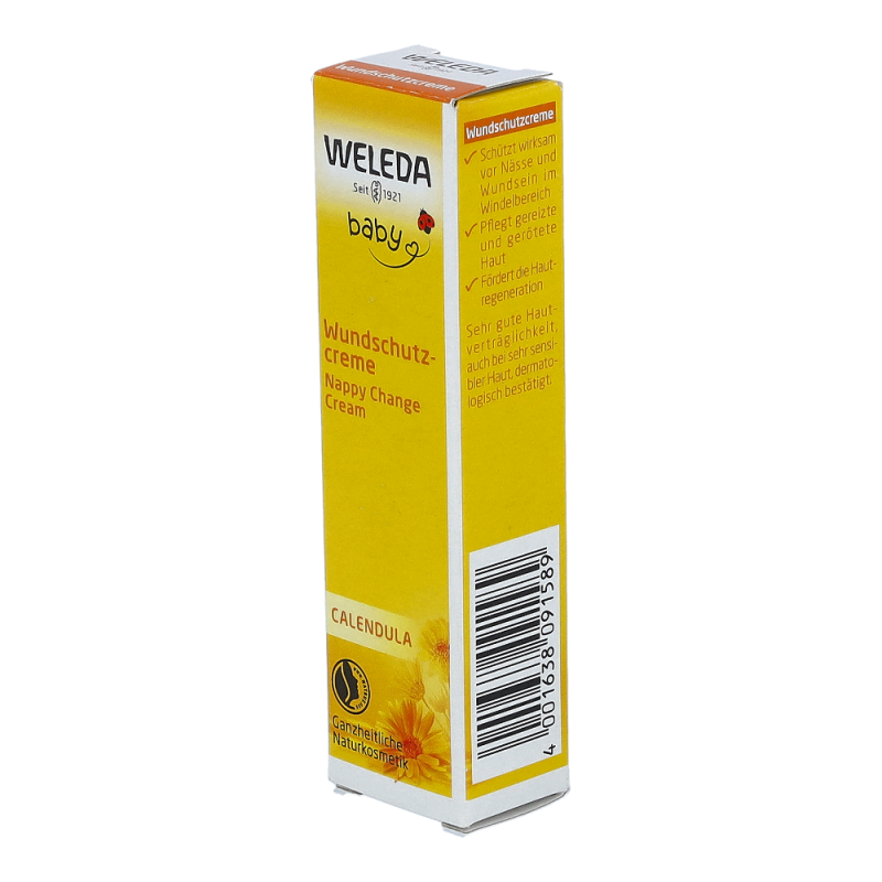 Weleda Babycreme Calendula beruhigt empfindliche Babyhaut dank Mandelöl, Bio-Calendula und Bio-Kamille auf natürliche Weise. Hautverwandtes Wollwachs und Zinkoxid schützen zuverlässig vor Nässe. Die Pflege ist vom ersten Lebenstag an geeignet.