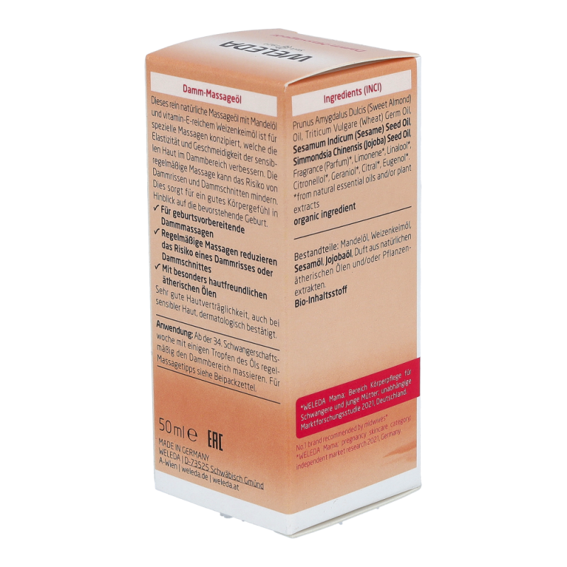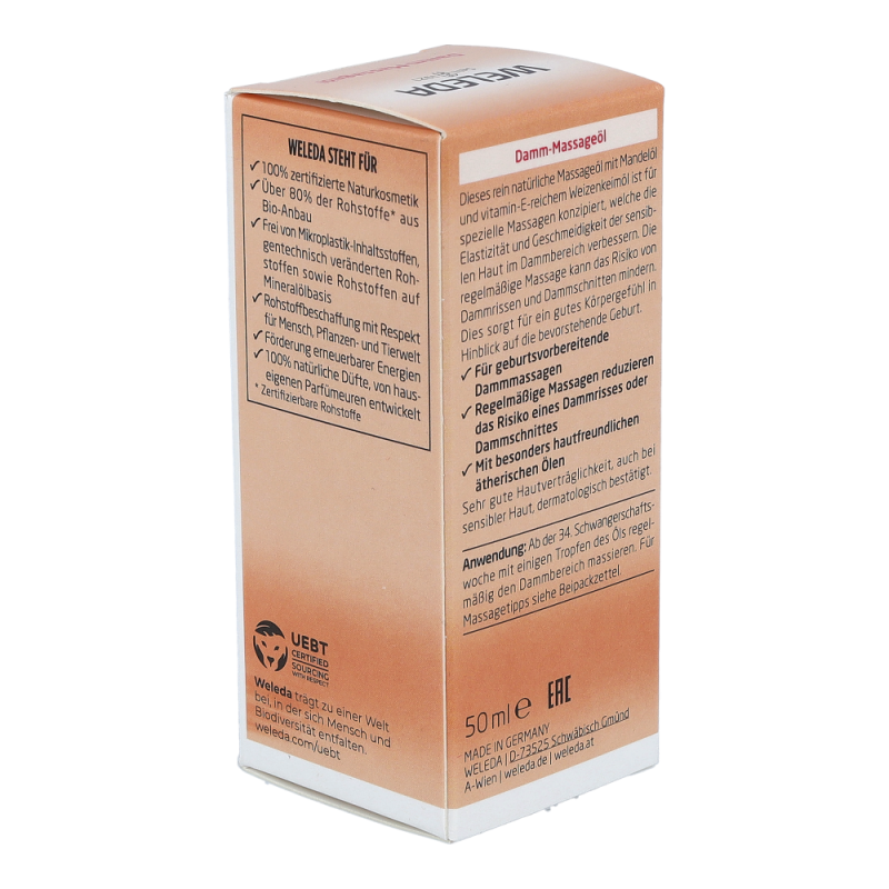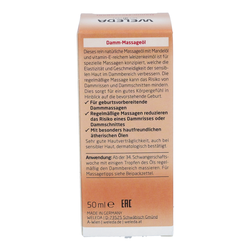 WELEDA® Damm Massageöl bereitet auf die Geburt vor. Regelmäßig angewendet ab der 34. Schwangerschaftswoche, macht das Damm-Massageöl das Gewebe weich und dehnungsfähig.