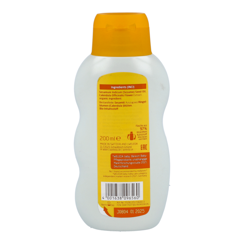 Weleda Pflegeöl Calendula parfümfrei ist ideal für die tägliche Hautpflege und die milde Reinigung im Windelbereich. Es hilft mit einem Auszug aus kontrolliert-biologisch angebauter Calendula, Hautreizungen und Wundwerden vorzubeugen. Durch das enthaltene Sesamöl aus kontrolliert-biologischem Anbau wirkt das Calendula-Pflegeöl wohlig wärmend.