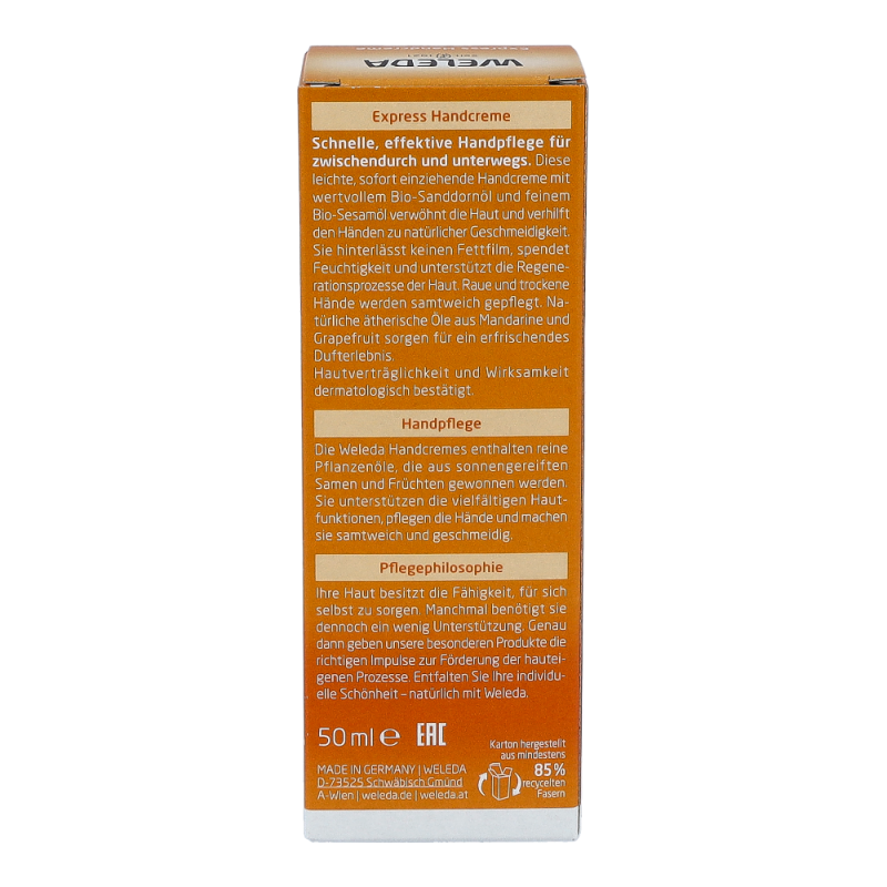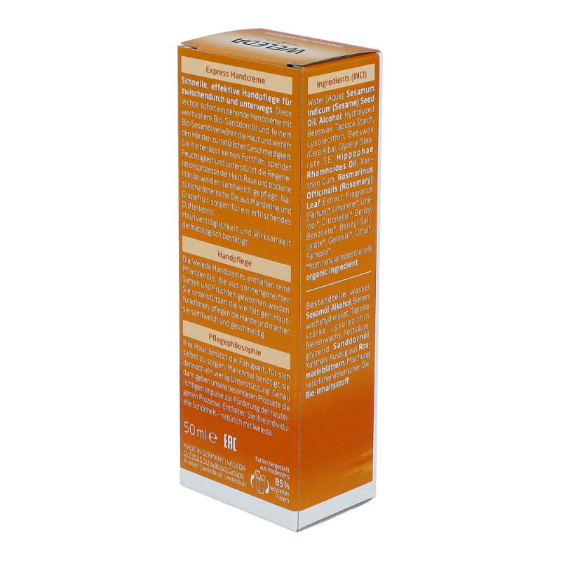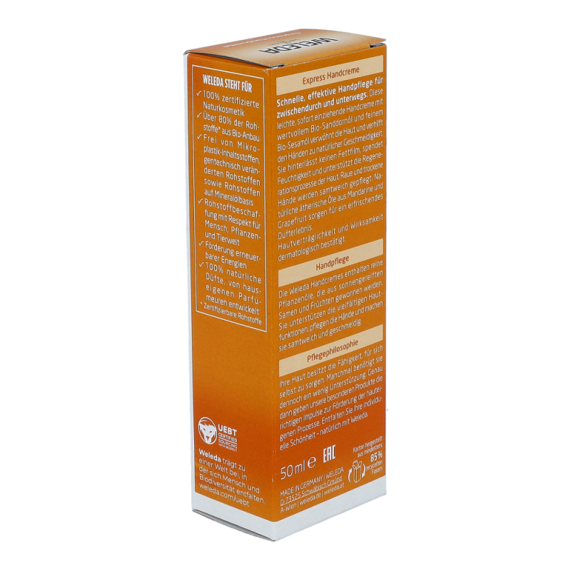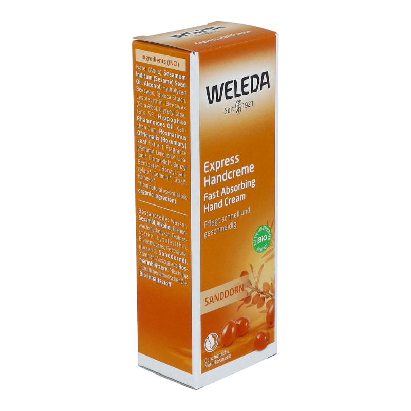 Die Sanddorn Handcreme ist perfekt für die schnelle Handpflege zwischendurch. Sie zieht besonders schnell und vollständig in die Haut ein und verwöhnt die Sinne durch ihren fruchtig frischen Citrusduft. Frei von synthetischen Duft-, Farb- und Konservierungsstoffen. Ohne Rohstoffe auf Mineralölbasis.