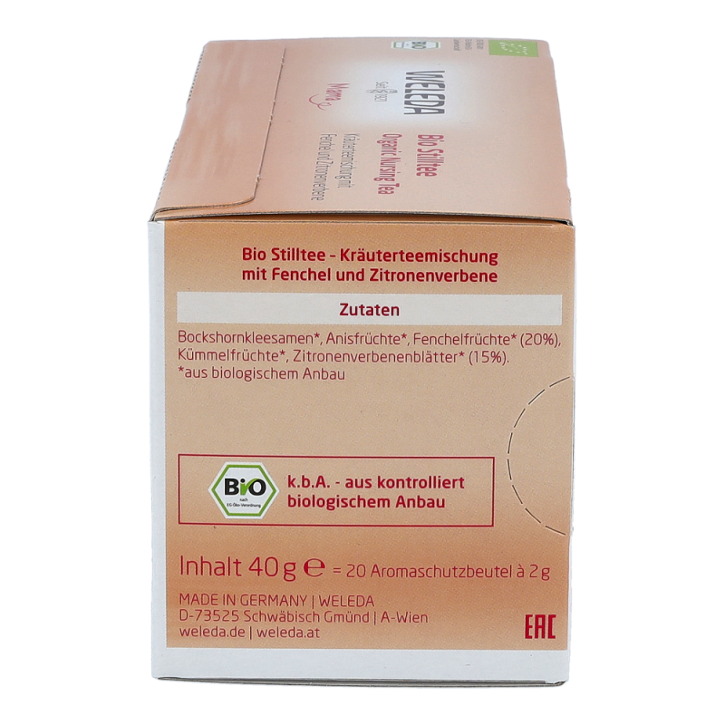 Weleda Stilltee 2 g Beutel ist eine Mischung von Pflanzenrohstoffen aus kontrolliert biologischem Anbau: ohne Kunstdünger und chemische Pflanzenschutzmittel erzeugt – schließlich trinkt das Baby über die Muttermilch mit. Der Weleda Stilltee ist angenehm aromatisch durch den hohen Gehalt ätherischer Öle und hilft den Flüssigkeitshaushalt auszugleichen.