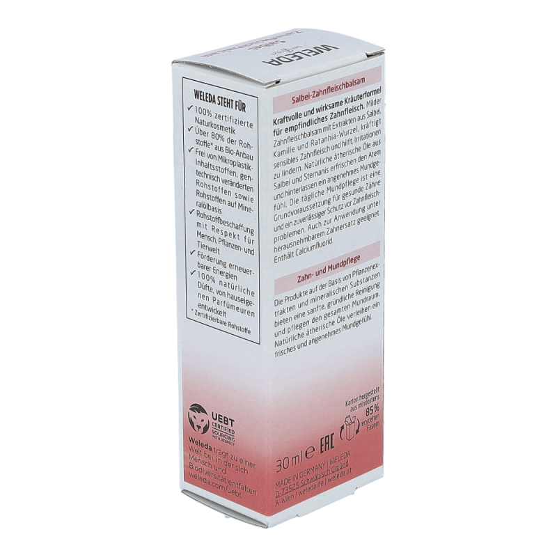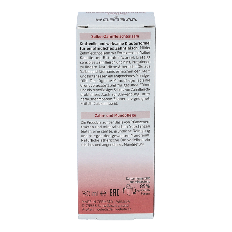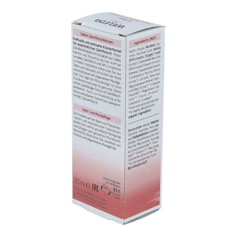 Salbei-Zahnfleischbalsam nach jedem Zähneputzen 1-2 Minuten mit einer weichen Bürste oder mit dem Finger sanft in das Zahnfleisch einmassieren. Gut einwirken lassen: Nicht ausspülen und ca. 15 Minuten nach Anwendung nicht essen oder trinken.