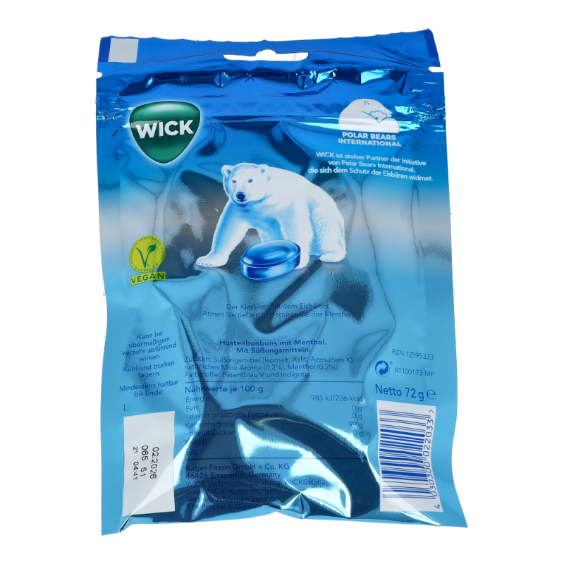 Wick Blau kombinieren ausgewählte Inhaltsstoffe wie reines Menthol und Öl der japanischen Arvensis-Minze. Der intensive und klassische Geschmack der zuckerfreien Hustenbonbons erfrischt bei jedem Griff in den wiederverschließbaren Beutel.