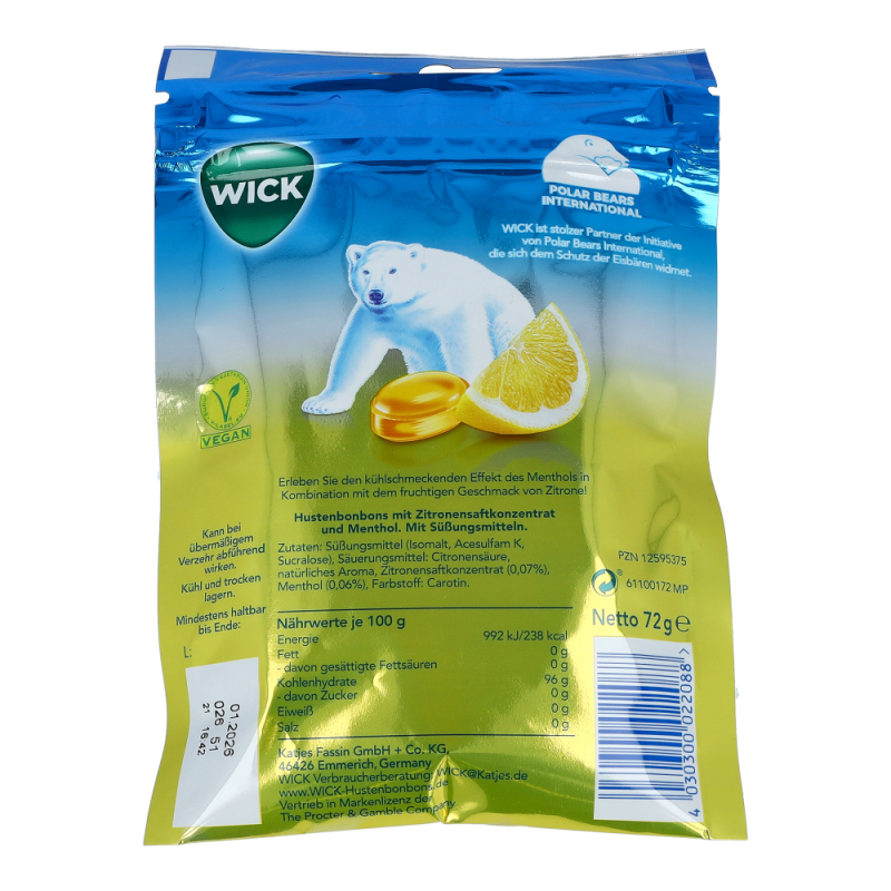 Wick ohne Zucker sind Halsbonbons, welche Ihren Hals beruhigen. Die sorgsam ausgewählten Inhaltsstoffe verleihen ihnen ihren wohltuenden Geschmack.