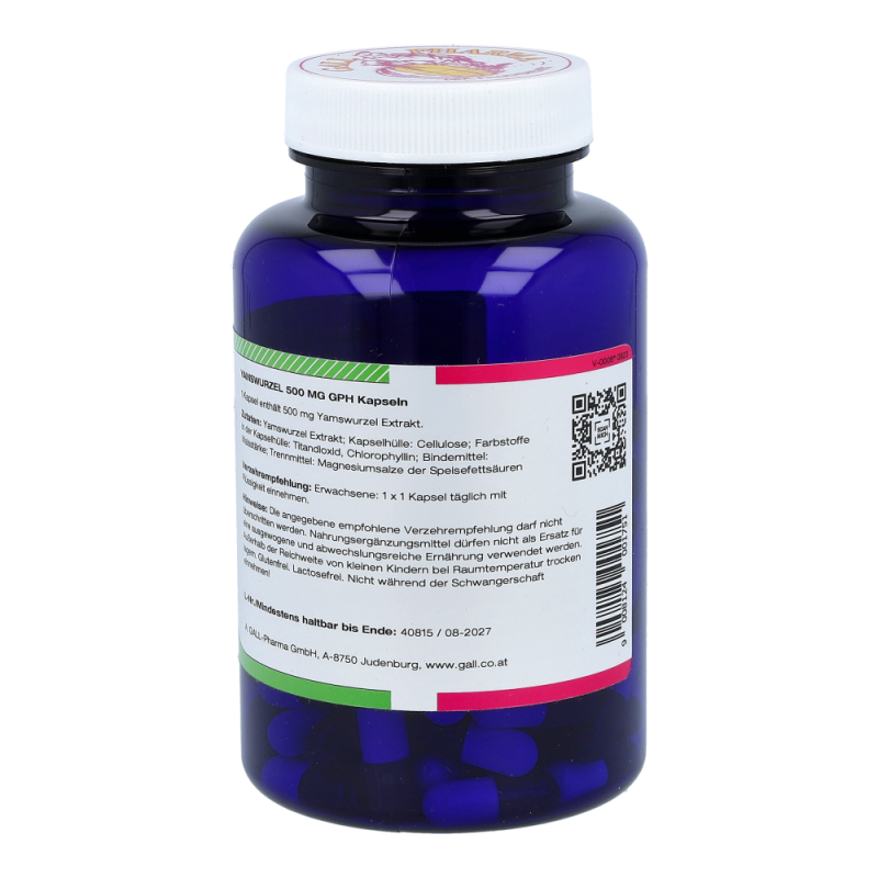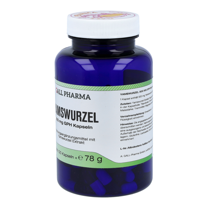 Gall Pharma Yamswurzel 500 mg Kapseln 120 Stk. sorgen für mehr Vitalität und Energie, besonders im zunehmenden Alter und hält fit in den Wechseljahren. Traditionell wird die Yamswurzel aufgrund ihrer entspannenden Effekte auf die Muskulatur, krampflösenden Eigenschaften bei Koliken und bei Menstruations- sowie Wechselbeschwerden angewendet – profitieren Sie von hohen Rabatten und dem großen Sortiment einer Standortapotheke!