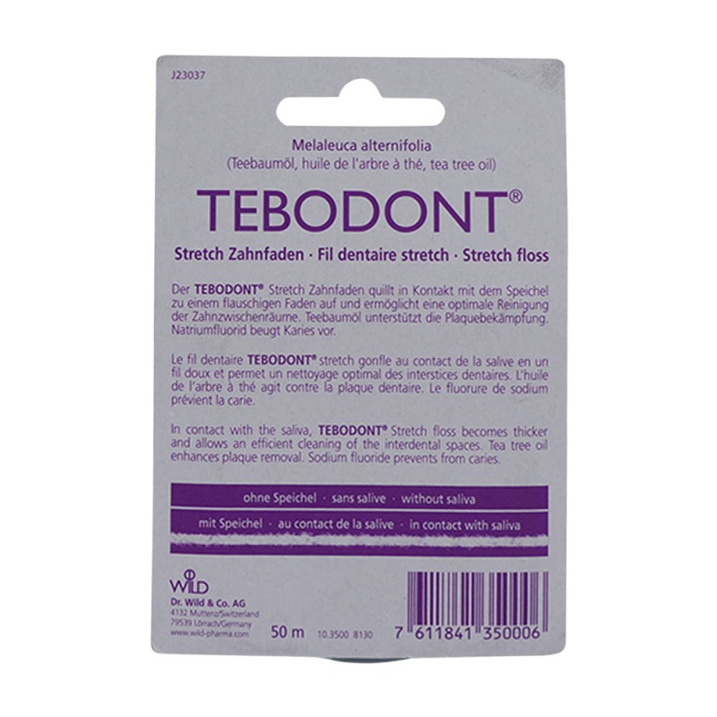 Zahnseide Tebodont Stretchfloss hemmt die Plaquebildung, pflegen und kräftigen das Zahnfleisch und sind klinisch erfolgreich getestet. Sie eignet sich zur Pflege und Kräftigung des Zahnfleisches und der Mundschleimhaut bei Prothesenträgern und bei Prothesendruckstellen.