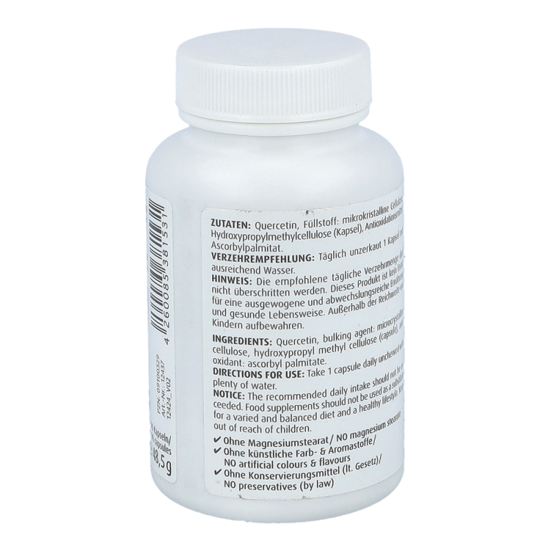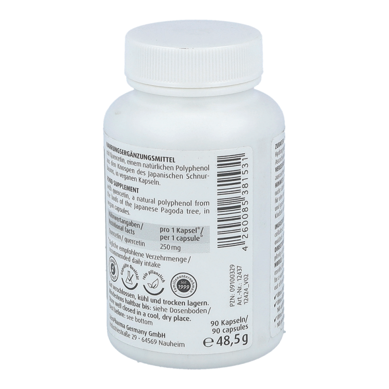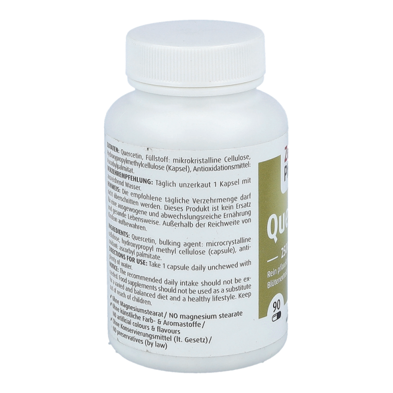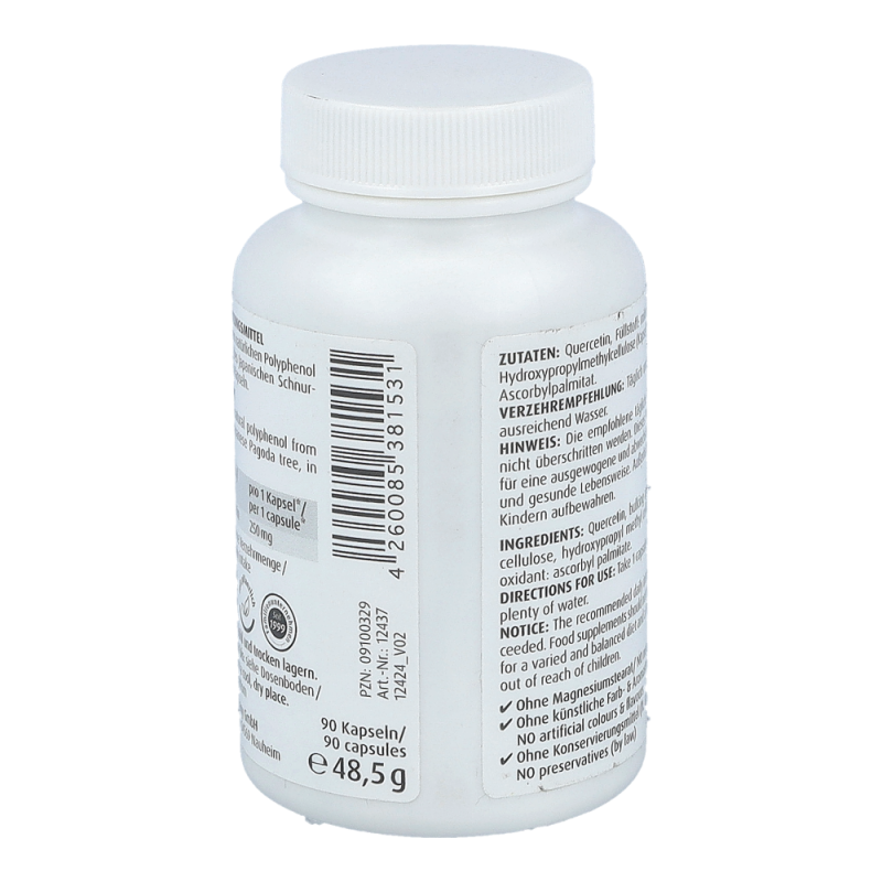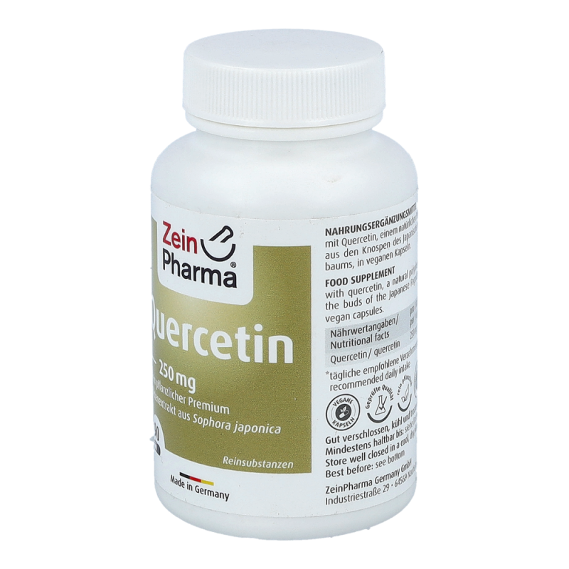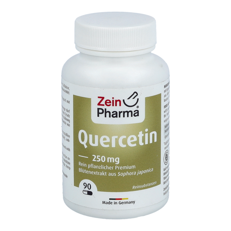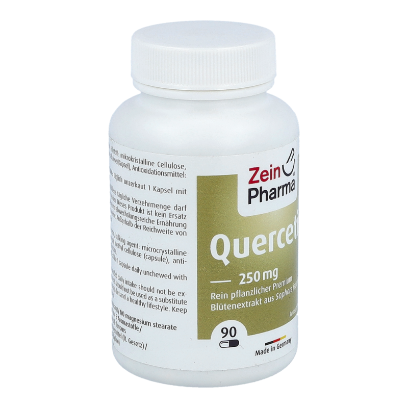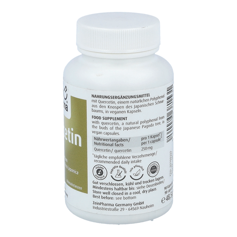 ZeinPharma Quercetin 250 mg Kapseln beinhalten je 250 mg reinem Quercetin, gewonnen aus den Blüten des japanischen Schnurbaums. Überzeugen Sie sich jetzt von der Effektivität dieses kostbaren sekundären Pflanzenstoffs und bestellen Sie hier gehobene Qualität zum fairen Preis.