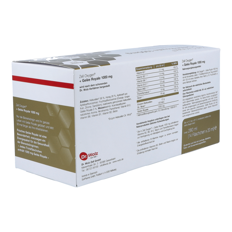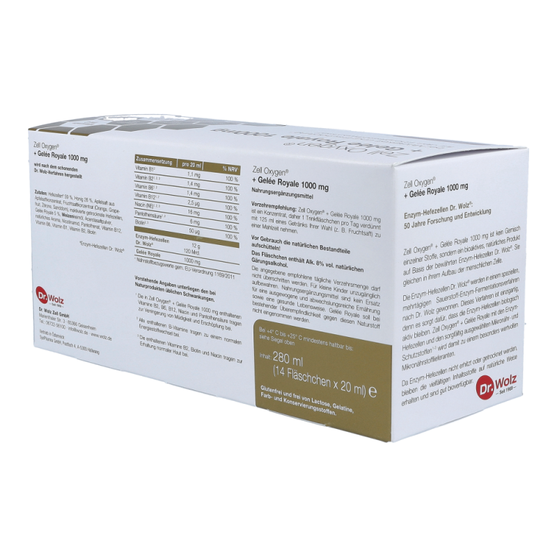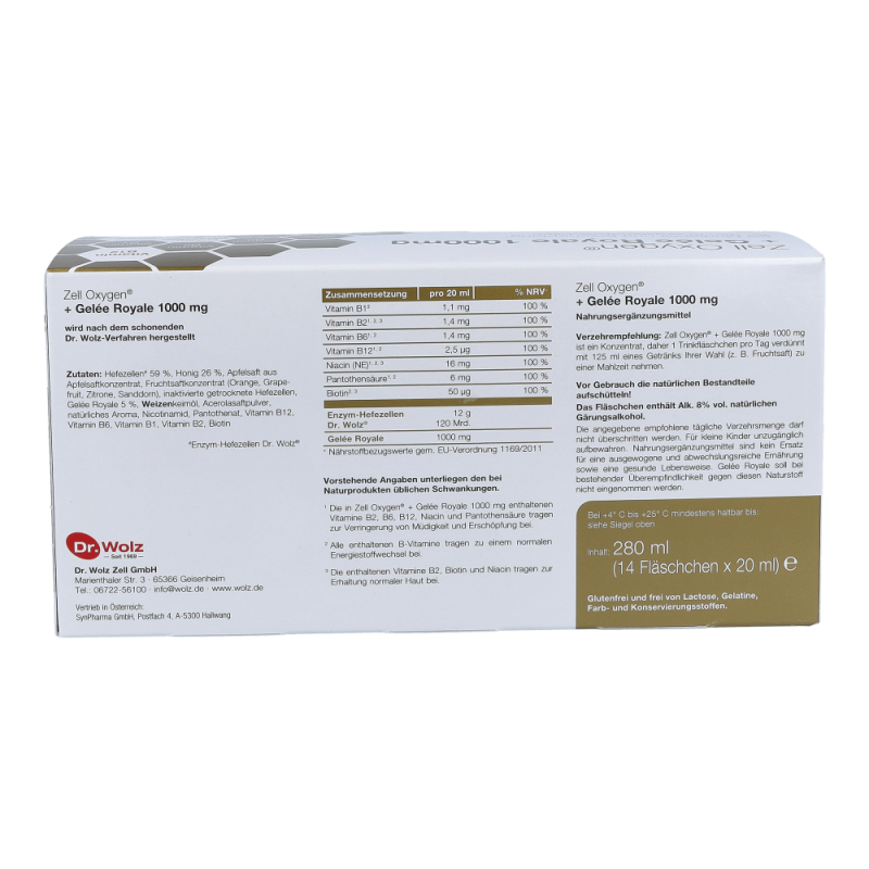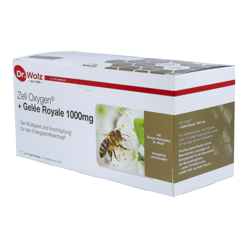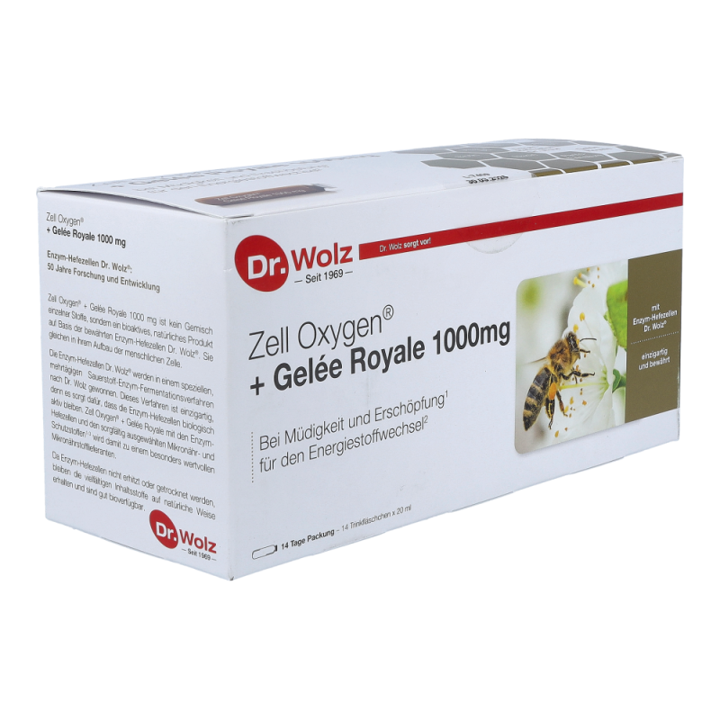Zell oxygen Trituration + Gelee Royal ist die einzigartige Kombination der Enzym-Hefezellen Dr. Wolz® mit der Kraft aus dem Bienenstock. Die Kombination der Enzym-Hefezellen Dr. Wolz® mit Gelée Royale und ausgewählten B-Vitaminen wird gerne von Menschen zur Wiederherstellung ihrer körperlichen Kräfte nach Krankheit, bei Erschöpfung und Müdigkeit kurmäßig oder sogar im Dauergebrauch angewendet. Erhältlich in den Varianten 600mg und 1000mg.