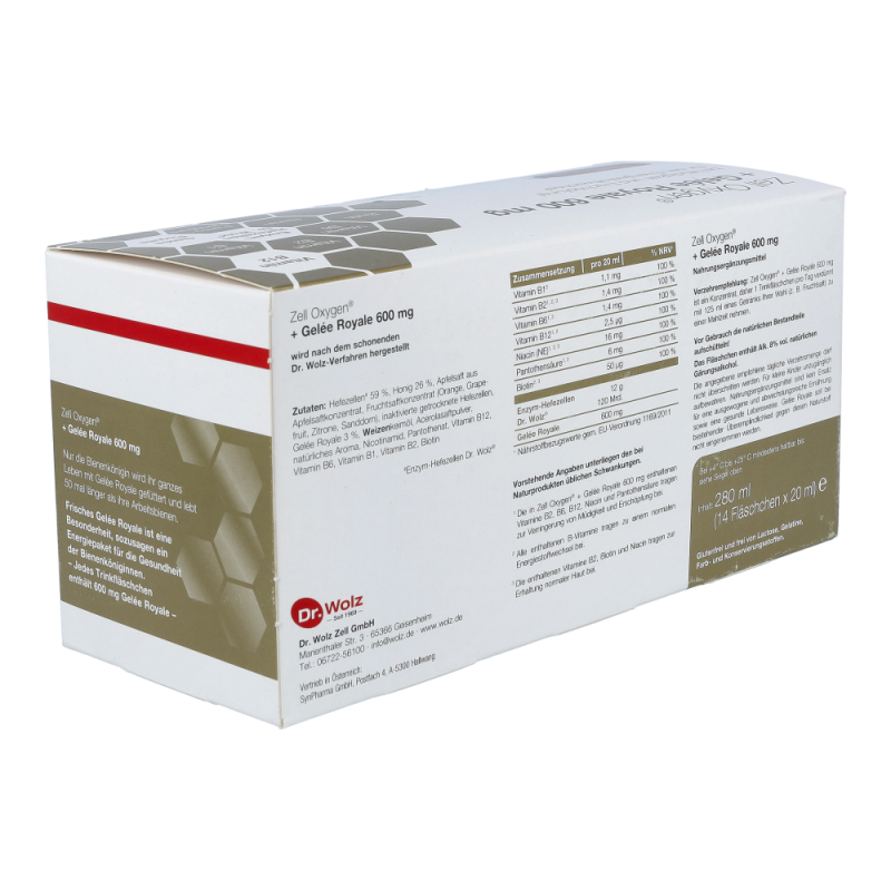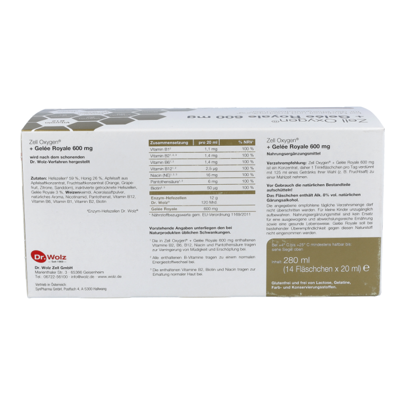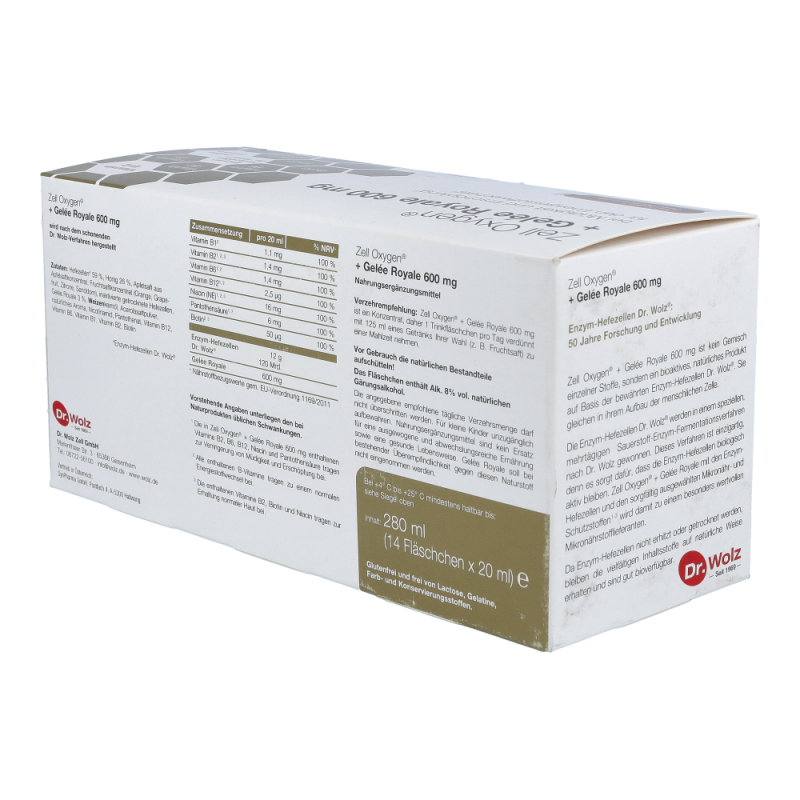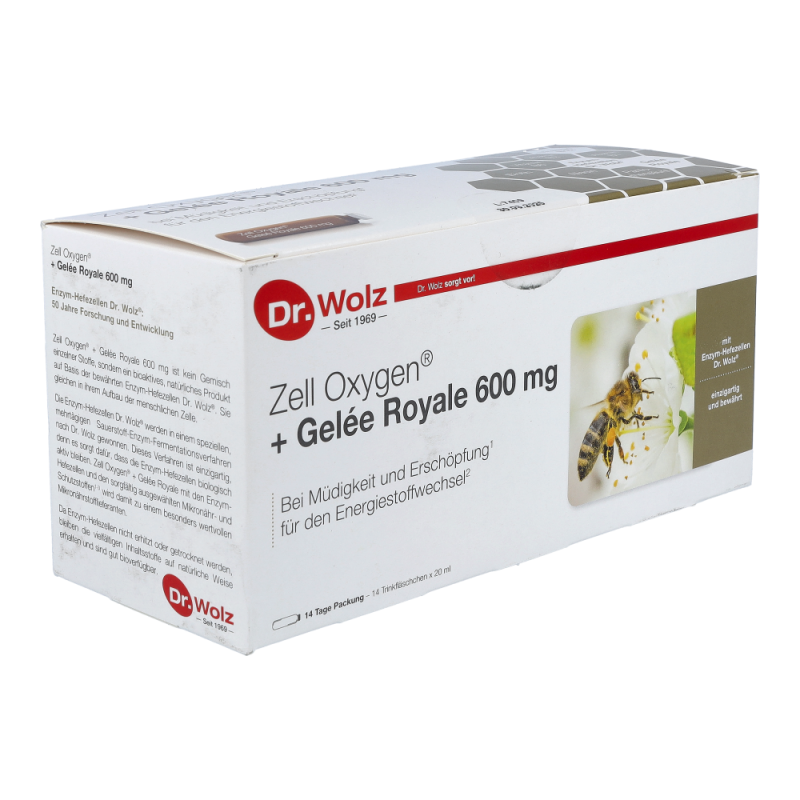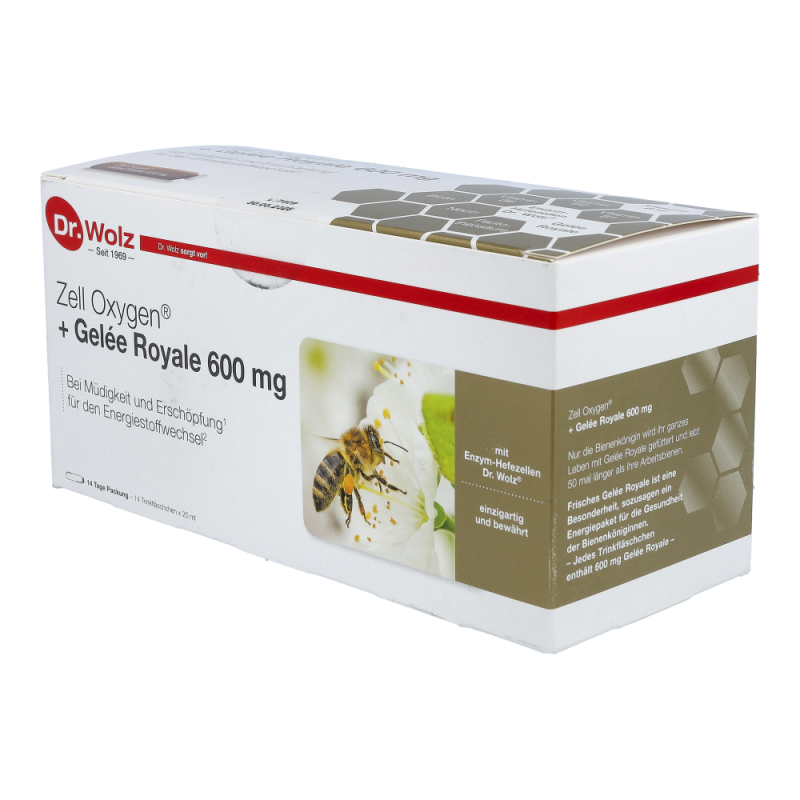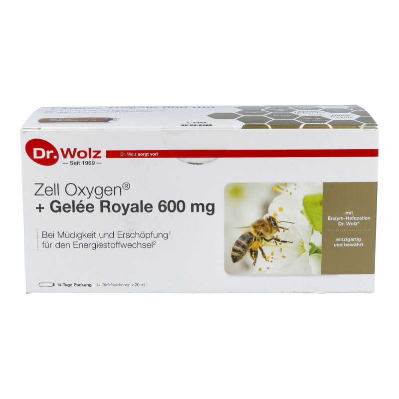 Zell oxygen Trituration + Gelee Royal ist die einzigartige Kombination der Enzym-Hefezellen Dr. Wolz® mit der Kraft aus dem Bienenstock. Die Kombination der Enzym-Hefezellen Dr. Wolz® mit Gelée Royale und ausgewählten B-Vitaminen wird gerne von Menschen zur Wiederherstellung ihrer körperlichen Kräfte nach Krankheit, bei Erschöpfung und Müdigkeit kurmäßig oder sogar im Dauergebrauch angewendet.