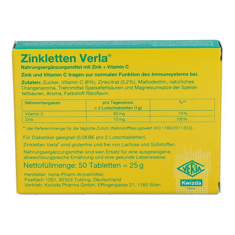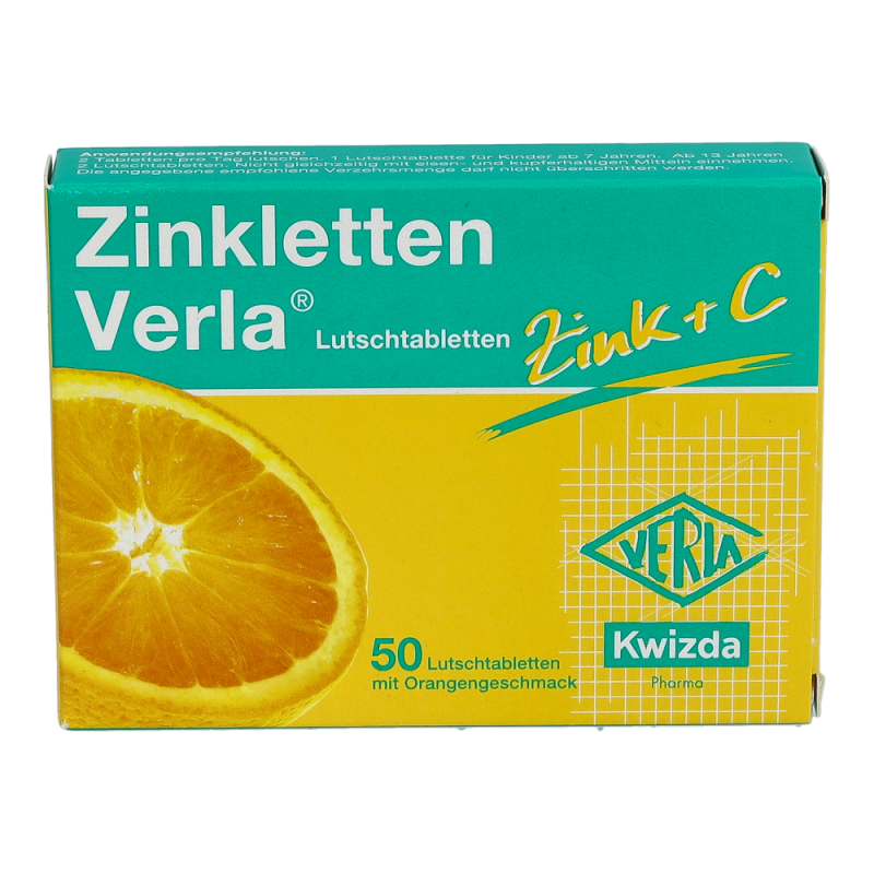 Zinkletten Verla Orange – Zink ist integraler Bestandteil von Enzymen, welche teilweise für die RNA- & Proteinsnthese benötigt werden. Zink unterstützt die normale Funktion des Immunsystems